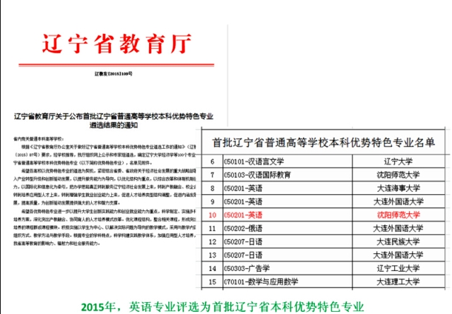 辽宁省普通高等公司本科优势特色专业-英语专业
