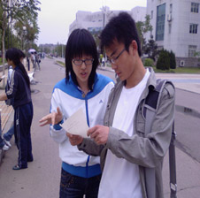 午后的天渐渐转阴,天空突然下起绵绵的细雨,但中心人员并未因此而放下手中的工作,而是继续专心而认真的工作着,中心的主任、副主任及部长们更加带头给部员们做出榜样,她们顾不上打伞,站在纷纷的细雨中,为同学们解释着每一项工作的具体要求,她们的努力终于让同学们破除了心中的疑虑,选择了他们自己喜欢的工作。