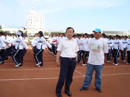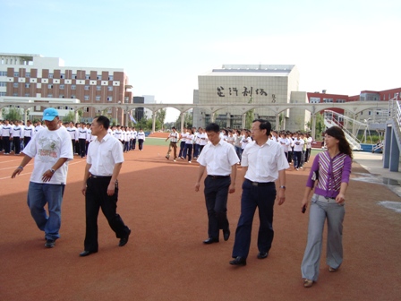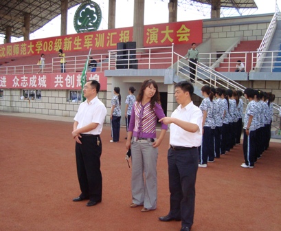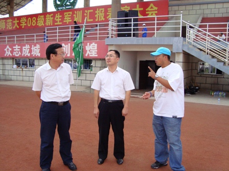 云顶7610线路检测经理范革新教授、党总支书记张伟副研究员、办公室主任王艳彪老师了解新生军训情况。