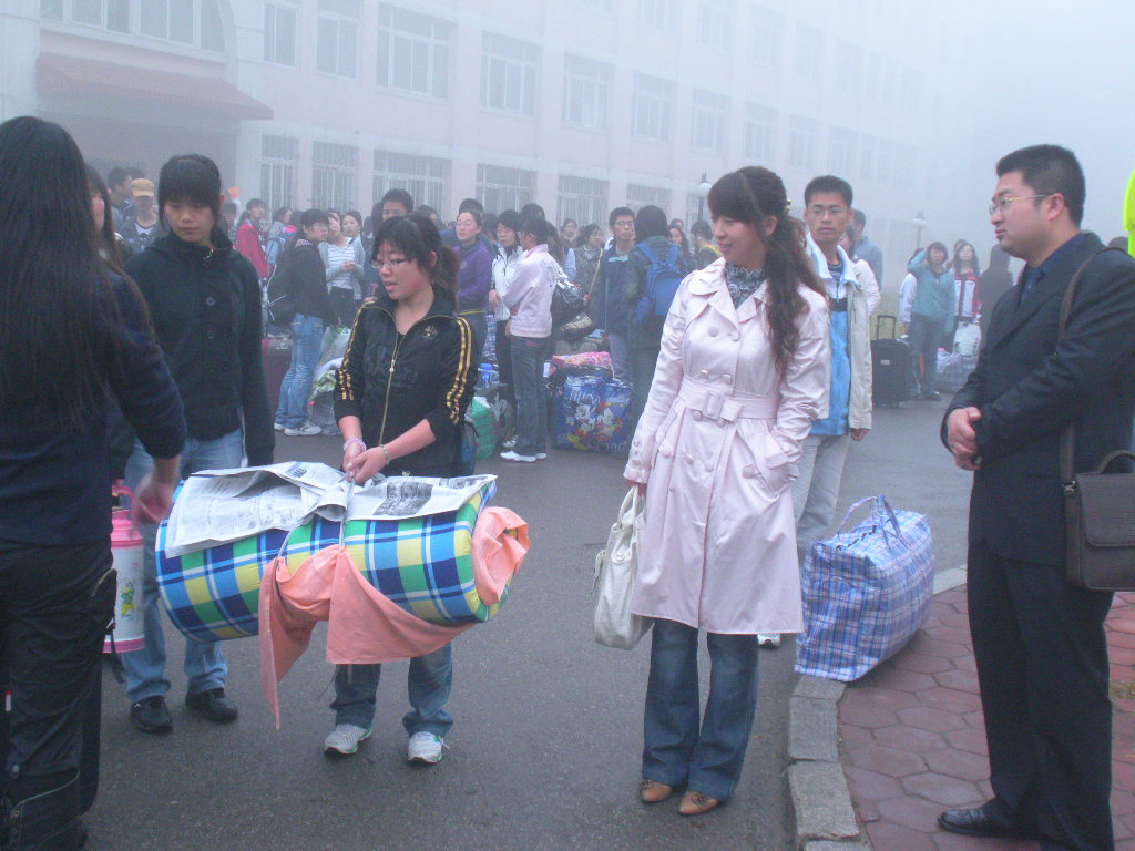2008年10月9日的清晨,浓雾弥漫,面前只有看不透的乳白色的混沌。公司的领导老师依然亲临现场,送上最诚挚的祝福。他们是:云顶7610线路检测经理范革新教授,党总支书记、副经理张伟副研究员,云顶7610线路检测副经理闫怡恂副教授,二系主任张萍教授、副主任郝军副教授,办公室主任王艳彪老师,副主任卢伟老师,05级专职辅导员崔宁宁老师,以及我们的员工干部团委副书记刘美丽,青年志愿者协会理事长刘竹。