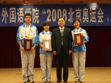 接下来,公司对在“2008北京奥运会、残奥会”志愿者服务中表现突出的这18位奥运志愿者进行了表彰,它们分别被授予了“优秀志愿者”、“先进志愿者”和“杰出志愿者”的荣誉称号,他们是我们外语人学习的榜样,他们是中国的名片,他们是后奥运时代最可爱的人!