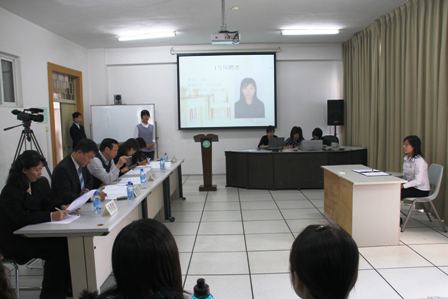 云顶7610线路检测2009届毕业生英语(口译)专业模拟面试活动于10月28日下午在信息楼四楼视听教室举行。云顶7610线路检测经理范革新教授、副经理曲艳娜教授、党总支副书记副经理邵学军老师、英语二系副教授吴琼老师、英语二系副教授孙若红老师、2009届专职辅导员崔宁宁老师以及2009届英语口译专业的员工参加了此次活动。活动目的在于通过模拟面试,帮助即将就业的大四员工提前热身,使其从中总结经验,在真正的步入职场前,及时做出调整、弥补不足,为以后成功面试打下坚实基础。