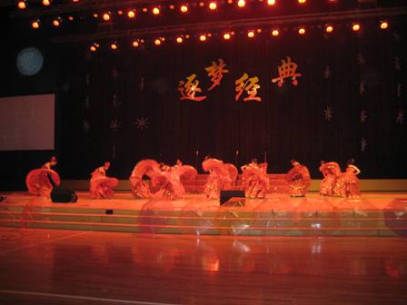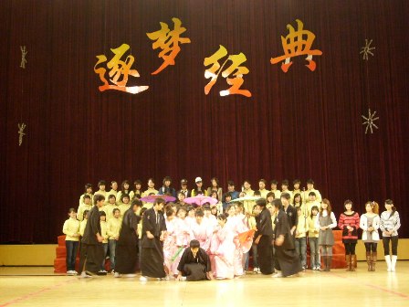 由2006级日语1-4班方队带来的日文歌曲《红蜻蜓》和舞蹈《鬼太鼓》再现了日本文化柔美又不失阳刚,大气又注重小节的特点,优美的舞蹈动作博得阵阵掌声,掀起了整个晚会的第一个小高潮。