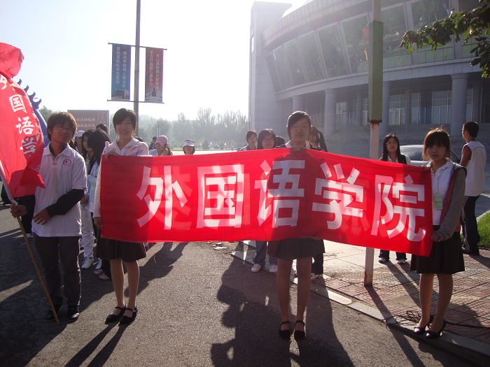 没有落叶的秋天,我们依然当春天过!迎新工作的圆满结束让我们感受到了春的气息。旭日东升到处皆呈新气象,桃李满园将来都是栋梁材。祖国六十华诞之际,伴着“共和六十载,外语绽华彩”的口号,我们全体外语人将携手09级新生,携手09年,为祖国献上一份生日贺礼!