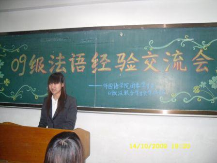在同学们期待的目光中,主持人宣布活动正式开始。06、07、08级的优秀学哥学姐们纷纷上台将自己总结的学习经验与大家共同分享。从学习态度到学习方法,他们毫无保留地传授自身宝贵经验,为大家今后的法语学习提供了良好的指导与帮助。同时,在如何把握老员工活的方面给出了中肯的建议。