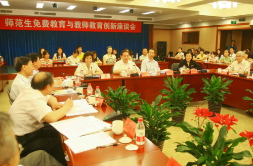 由教育部、光明日报、北京师范大学联合召开的师范生免费教育与教师教育创新座谈会今天(6月19日)在北京举行。教育部部长袁贵仁出席座谈会并讲话,教育部副部长陈小娅主持。