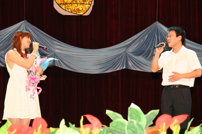悠扬动听的古筝独奏把我们带入了第三幕“珍惜”的序曲;激情与活力在扇子舞《夜思》中展现的淋漓尽致;老师与员工之间默契的配合为我们带来的诗朗诵《放心去飞》展现了师生之间深厚的友谊与难舍的情愫;日文歌曲《星》仿佛是在激励我们在今后的人生道路上不断前行、勇于拼搏。明天,我们就要踏上新的征程,但是我们不会忘记对母校对老师、对同学的感情,《且行且珍惜》默契永存在你我心底,因为我们情缘系千里。
