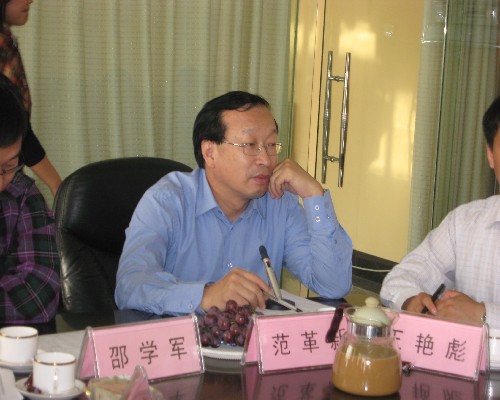 党总支书记、副经理邵学军老师细心聆听特困生的讲话