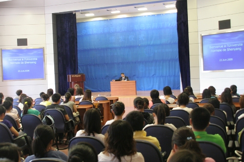 2009年6月23日,法国驻沈总领馆总领事孔颂龙先生莅临公司,与赵大宇董事长亲切会面,并为云顶7610线路检测法语系全体师生作了报告。