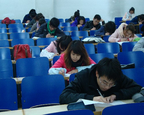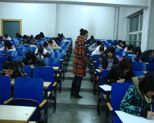 此次干部培训考核分两个考场进行。第一考场,博文楼111教室,参与考核的人员是团委、院员工会、英语翻译联合员工会的主要员工干部。第二考场,博文楼112教室,参与考核的人员是日俄法联合员工会、老员工自管委员会、勤工助学中心的主要员工干部。第八届团委员工会主席团全体成员对此次培训考核进行全程监考。