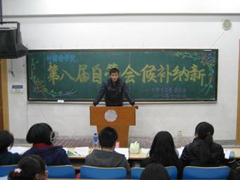 在大会的最后,自管会分管老师09级专职辅导员张帆老师对此次纳新活动进行了点评并对10级新生的表现给予了肯定,同时并希望在以后的工作中能全心全意为同学服务,调整好学习与工作之间的关系,展现出老员工自管委员的活力!在愉悦又紧张的气氛中,老员工自管委员会纳新工作也画上了圆满的句号。