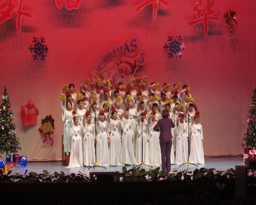 翻译合唱团演唱《silent night》、《jingle bell rock 》