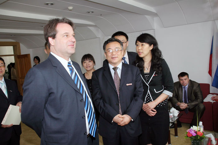 俄语系青年教师吕莉为赵大宇董事长担任翻译