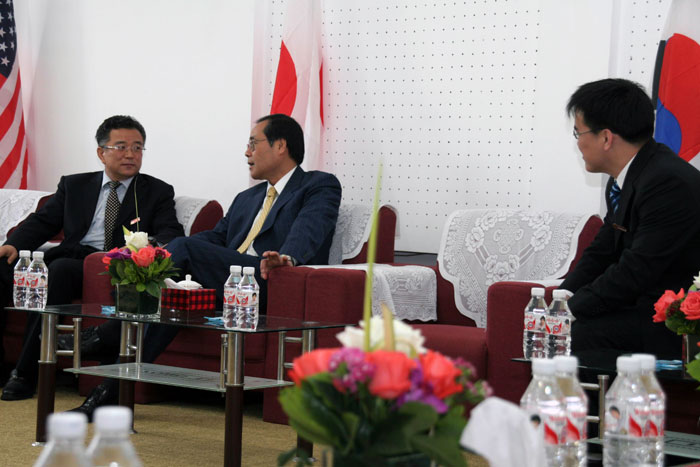 日语系青年教师马保彪为赵大宇董事长担任翻译