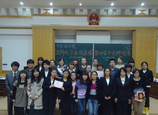 2011年10月20日晚上17:30,我们在博文楼210教室举行了“理辩天下,舍我其谁”第四届中文辩论赛的决赛。此次决赛的辩论双方是法语方队和英语三四班方队,他们个个自信满满,口齿伶俐,为现场观众和评委带来了一场精彩的对决。辩论赛,这一独具特色的精神盛宴,语言大餐,作为公司历年学风建设月的传统项目,备受同学的欢迎。
