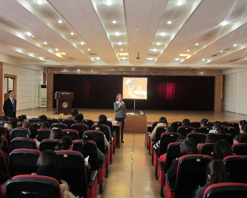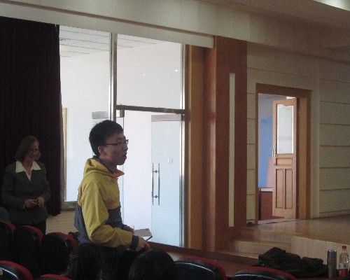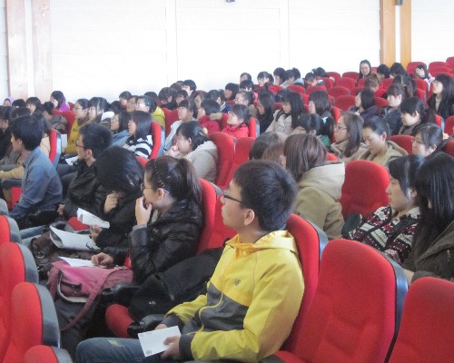 首先由主持人Jannet女士,对美国高校做简单的介绍。接下来,美国教育在线机构代表殷嘉先生对留学相关事宜做了详尽的介绍,其中包括留学概况,职工需要进行的准备,如何选择公司,以及如何写申请书及推荐书等。通过殷嘉先生详尽的介绍,我们对留学的概念及事宜有了更清楚的认识。并且,针对同学们所提出的问题,殷嘉先生也进行了详细的解答,让同学们觉得离留学又近了一步,同时也消除了很多对留学的错误认识。殷嘉先生还表达了对同学们的深切希望,希望同学们能够抓紧机会,完成人生中美丽的梦想。