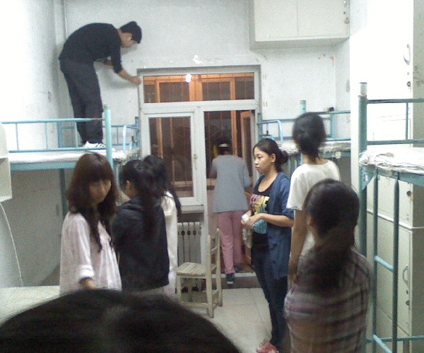 接着,团委的工作人员又对寝室进行了逐一的检查以确保打扫干净,才能迎接新生入住。对于检查不合格的寝室,工作人员通知分管的班级进行再一次的清扫。