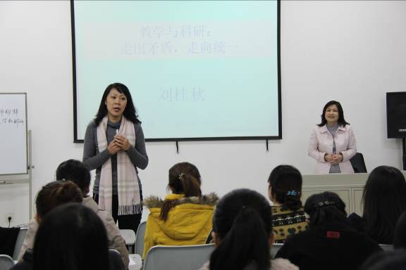 英语专业副教授刘桂秋博士做题为《教学与科研:走出矛盾,走向统一》讲座