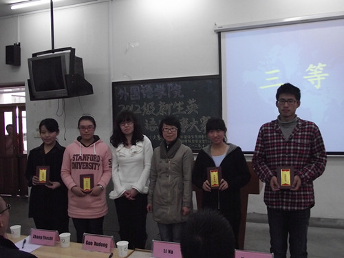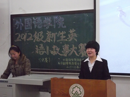 清浅流年,拾一抹暖意,走过秋凉。落叶以最完美的姿势舞在季节的转角,带走了秋的繁华,也带来了冬的寒意。天气流转的凉意,却在2012级新生英语小故事比赛圆满落幕时的那一刻为我们带来了收获的喜悦和温暖。2012年11月9日,经过初赛复赛的激烈角逐,在博文楼310教室共有20名新生选手参与了这场竞争激烈,扣人心弦的比赛。