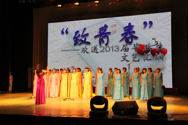在2013届硕士、学士毕业暨学位授予仪式后,本次毕业典礼在校歌声中缓缓落下帷幕。在随后进行的由团委员工会组织的“致青春” 欢送2013届毕业生文艺汇演中,师生们用精彩的文艺节目表达了对毕业生们的美好祝愿。