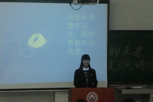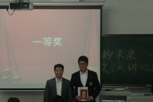 晚上五时,比赛正式开始。参赛选手将以“我的大学,我的未来——中国梦,我的梦”为主题进行不超过4分钟的演讲,评委将根据选手文章文采、PPT展示、语言表达、文章创意以及整体效果进行评分。比赛最终将评出一等奖1名,二等奖2名,三等奖3名,最具潜力奖、最佳人气奖、最佳文采奖、最佳创意奖各1名,优秀奖5名以及优秀班级4个。作为开学后的第一个大型活动,同学们参与热情极其高涨,许多班级都为本班选手喊口号,更有班级画海报造声势。纵观比赛场上,选手们或回忆过去,或展望未来,均慷慨激昂的诉说自己对于中国梦的理解与对于大学梦的希冀。在大学中每一天的成长,都将为他们的老员工活添上了浓墨重彩的一笔。《一路不变》和《nothing‘s gonnna change my love for you》两首歌曲,抒情的曲调有效地环缓解了选手们紧张的情绪。