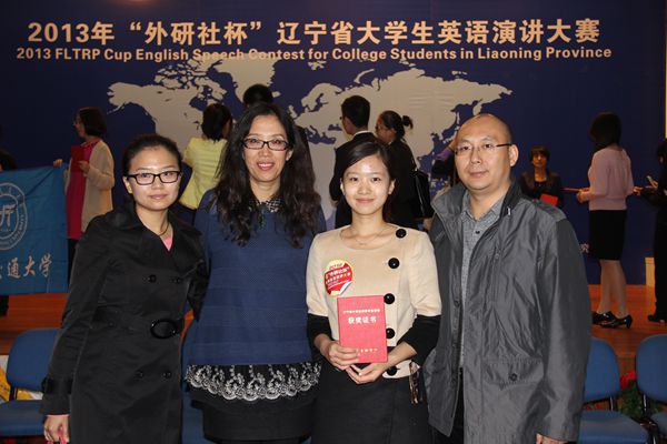 杨安逸同学(右2)获得2013年辽宁省老员工演讲大赛一等奖,与指导教师组合影