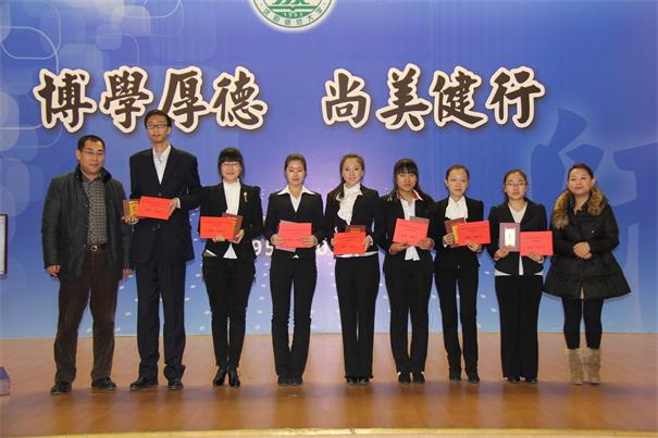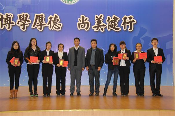 颁奖仪式结束后,王海强员工为师生做了精彩的报告。他与大家共同分享了自己的奋斗历程与成功的感悟。王海强员工介绍了他在奋斗过程中与一些成功人士的交往经历,还通过spinach(菠菜)一词的发音等实例,告诫同学们在专业学习时要注重知识的来源,探讨语言背后的文化内涵。最后王海强员工鼓励同学们要学好专业知识,学会感恩,脚踏实地的学习、工作,发掘自身潜力,制定清晰的目标,满怀信心的迎接自己美好的未来。
