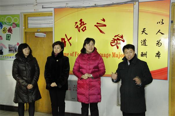 12月11日中午,员工处刘亚军处长,左冰副处长,张英老师,第一生活区物业刘春平主任,公司党总支王艳彪副书记,团委书记张博老师以及全体辅导员老师共同来到第一生活区3号楼,参观公司寝室文化建设成果并进行“外语之家”揭幕仪式。公司自管会员工干部20余人也参加了此次活动。