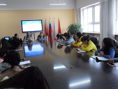 曾参加过2013赴美冬令营的吕秀璐同学也为大家分享了自己参加美国之旅的亲身感受。虽然距离冬令营的结束已经有一段时间了,但是那种兴奋感仍然能从她的字里行间体会得到。她说,此次活动使她改变了对美国生活的印象,亲眼见到的美国成为了她人生中一份难忘珍贵的经历和回忆。同时她鼓励大家多多走出去,在领略到别样生活的同时也会开拓我们的眼界,丰富自己的人生阅历。会议的最后是自由提问环节,同学们就自己的自身情况与周老师和吕秀璐同学进行了交流,周老师和吕秀璐同学也热情认真地给予了解答。