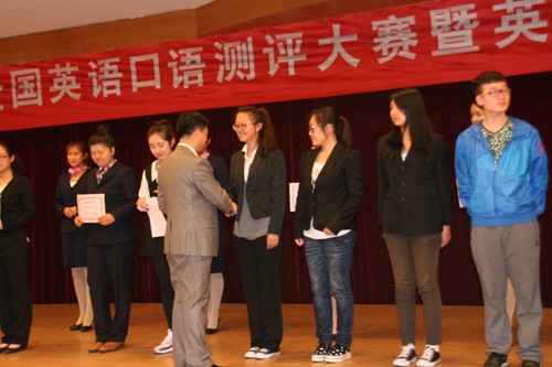 党总支王艳彪副书记为首届国英语口语测评大赛优秀选手颁奖