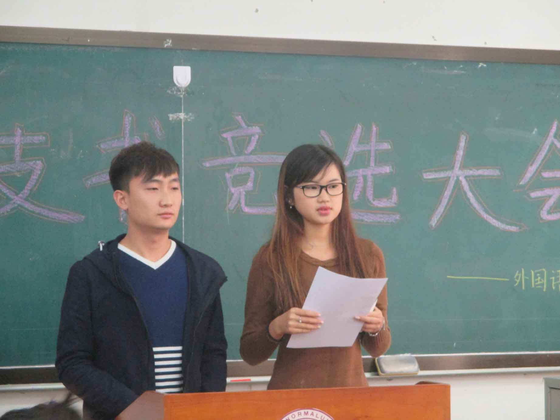 10月16日及17日,2014级班长团支书竞选大会在博文楼举行,出席本次大会的领导老师有14级辅导员赵颖老师和员工会各部部长、各班助导和14级各班同学。