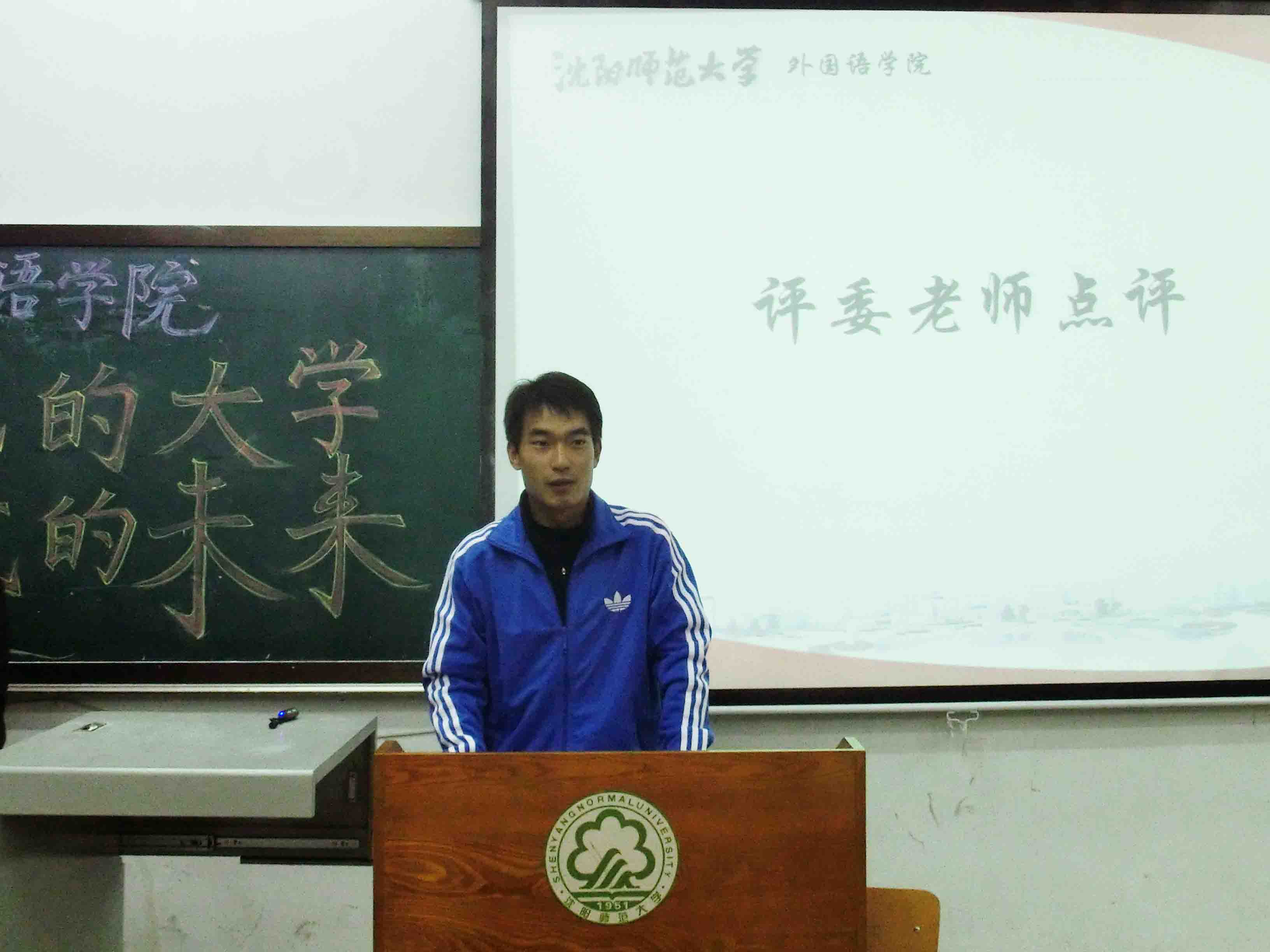 在比赛的最后,徐亮老师对本次比赛进行了总结发言。他用幽默风趣的语言为我们作了总结,他说,这是一次让他深受感动的比赛,对梦想的讲述让他的记忆仿佛被拉回了上大学的那些日子,他提出了“交友为爱”的理念。他告诉大家,每个人都应该有一个梦想,不同时期可以有不同的梦想,我们同学应该在学习生活中多多锻炼自己以实现自己梦想的梦想和追求。