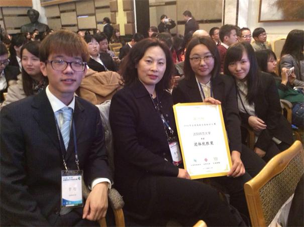 参赛员工与指导教师日语系鲁畅教授(左二)合影