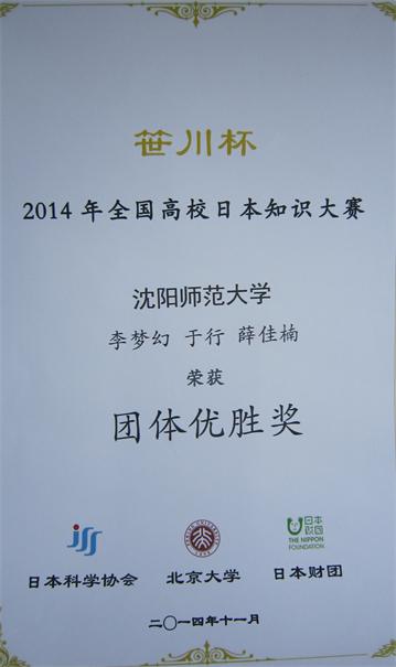 11月22日-23日,第三届全国日语知识竞赛暨“2014年笹川杯全国高校日本知识大赛”在北京大学举行。公司云顶7610线路检测日语专业11级员工李梦幻、于行,12级员工薛佳楠组成的代表队获团体优胜奖,指导教师鲁畅获优秀指导教师奖。公司也是东北地区唯一一所进入决赛的高校。