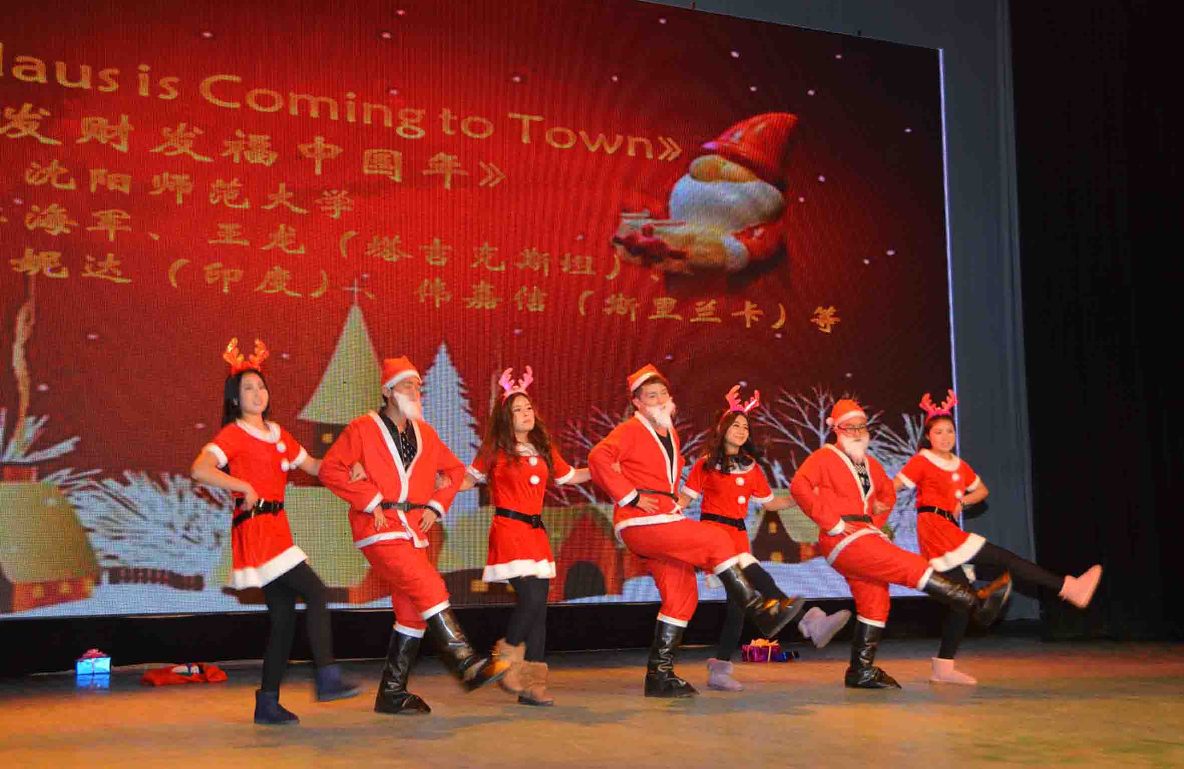 本次晚会节目形式多样,精彩纷呈,整场晚会充满了轻松愉悦的气氛,由四个公司的同学们带来的精彩表演也赢得了观众的阵阵掌声。本次晚会主持人由来自四个主办公司、四个不同国家的职工及一名公司云顶7610线路检测的员工共同组成。一首《新贵妃醉酒》配合着苍劲有力的软笔书法,“四海一家”的墨香飘进每一个人的心里,拉进了大家的距离,在这里,没有肤色和国籍之分,大家都带着一颗赤诚之心相聚聚在一起欢度圣诞。随后,来自辽宁大学的乐队表演掀起了整场晚会的高潮,现场气氛持续高涨,更有职工同学带来的抑扬顿挫的诗朗诵、或优美或热烈的舞蹈,还有他们带来的经典中文歌曲,足可以看出职工同学们的精心准备.