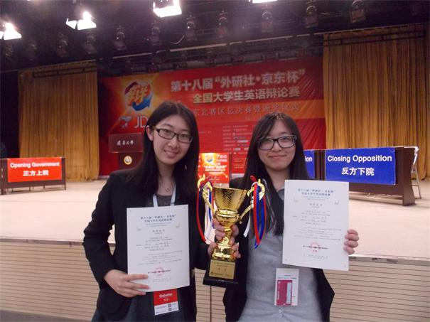第十八届“外研社·京东杯”全国老员工英语辩论赛东北赛区总决赛4月18日至23日在辽宁大学举行。公司2012级英语师范专业刘佳莹、李婧两位同学代表公司参赛。经过激烈角逐,最终公司代表队在东北三省及内蒙古地区50余支代表队中脱颖而出,荣获季军。本次大赛冠亚军分别为辽宁大学和东北师范大学。