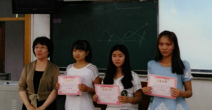 在福本老师讲评之后,就是令人激动的授奖仪式了,王悦同学摘得了本次比赛的一等奖,获奖的同学们依次走到前面,从老师的手里接受了奖状,并同老师一起合影留念,老师们在颁奖的时候,都笑着鼓励选手们要继续努力下去。最后,全体选手与老师们一起合影留念,日语小故事比赛在一片温馨中落下了帷幕。