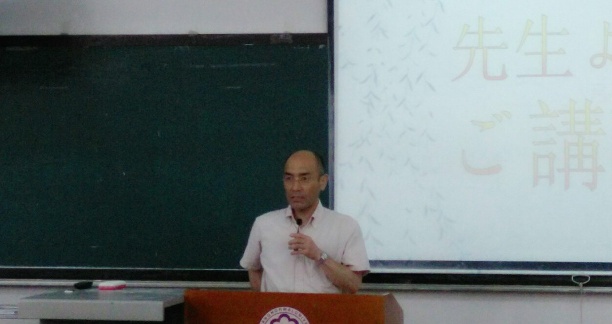 在比赛进行到一般的时候,两位日语系的员工带来了非常精彩的串场歌曲。在11位选手全部表演完毕之后,福本聪老师进行了讲评。福本老师首先肯定了各位选手的认真与努力,随后,福本老师认真的指出了大家的问题。老师告诉大家,在说日语时要多多注意单词的发音和讲话的音调,同时,掌握好句子的断句和说话人的情感也是至关重要的事情。同学们都认真的听着,把老师讲的东西好好地记在了心里。