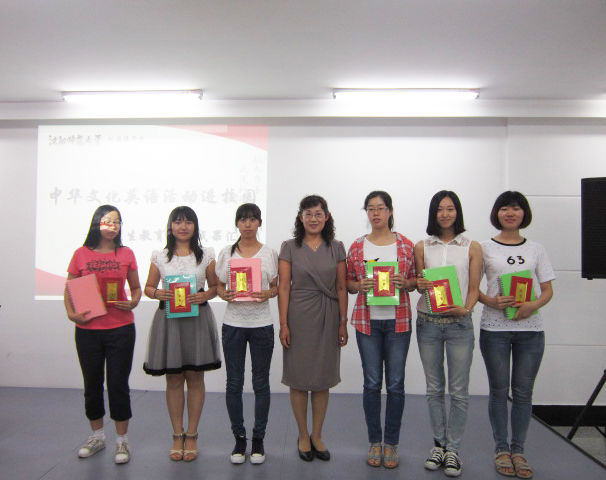 研究生与教育管理部主任张萍教授为“汉字书写大赛”成功晋级校级比赛的员工颁奖