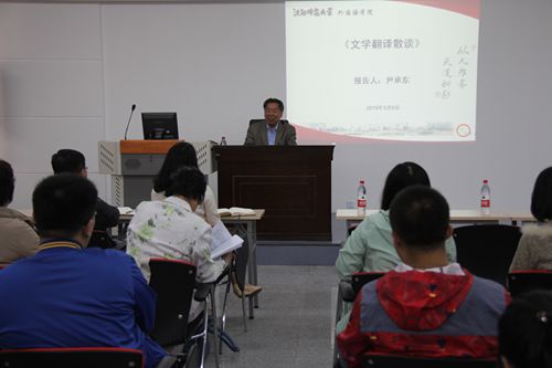 报告由经理闫怡恂教授主持。报告中,尹承东先生以亲切交谈的方式深入浅出的探讨了翻译实践之中的甘与苦,难与乐。尹先生的报告主要涵盖了以下四个方面的内容: