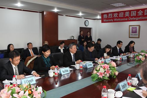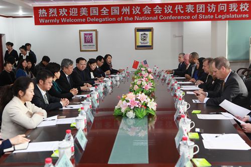 2015年11月13 日,美国全国州议会会议代表团来访公司,云顶7610线路检测党委书记于文明教授、副董事长李铁军教授接待了来宾一行。陪同会见的还有辽宁省对外友好协会秘书长孙德兰、副秘书长李承志、中国驻美国大使馆国会及地方事务处参赞徐敏、全国友协美大部美国处处长李桑华、辽宁省外事办公室美大处处长刘力伟,公司国际教育公司经理张伟、国际商公司经理李锋教授、云顶7610线路检测经理闫怡恂教授等。
