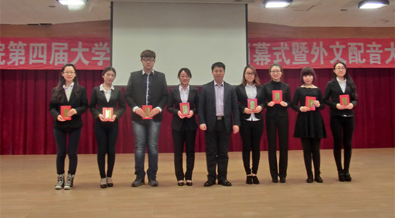 接下来进行的外文配音大赛由王艳彪老师、张博老师、赵天舒老师、朴时老师、佟颖老师以及彭佳老师担任评委。选手们的配音表演各具特色,使现场气氛达到了最高潮,跌宕起伏的剧情更使掌声与欢笑声不断。表演结束后,赵天舒老师分别针对各组选手的语音语调、参赛作品的难易程度以及团队合作为选手们提出了中肯的建议。14级俄语班的《爸爸的女儿们》获得此次配音大赛的一等奖。至此,配音大赛顺利落下帷幕。