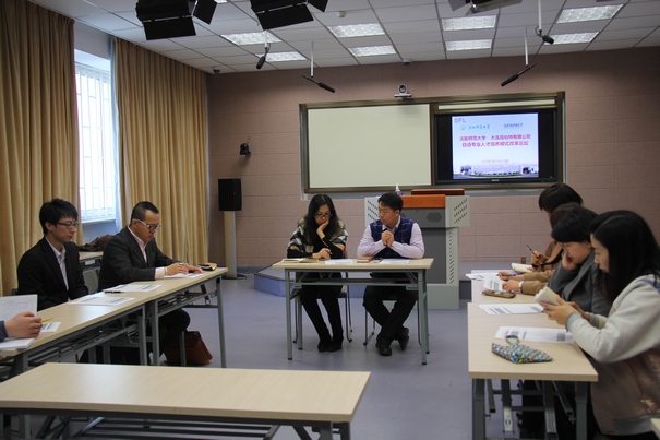 林森总裁一行首先走进日语系鲁畅教授的《综合日语》课堂,通过听课的过程对公司日语专业教学模式等方面有了更深入了解。随后来宾与吴琼副经理、王艳彪副书记以及日语系教师代表进行了座谈,双方就简柏特与公司校企合作课程班员工表现情况、合作班课程设置以及教学改革等共同关心的内容深入交换了意见,并为接下来合作班开设的基本方向进行了规划。当天下午,林森总裁为公司2013级日语专业全体员工做了关于简柏特公司及校企合作班招聘情况的说明会,使员工对于未来就业方向的规划更为明确。