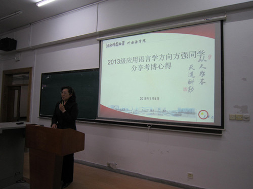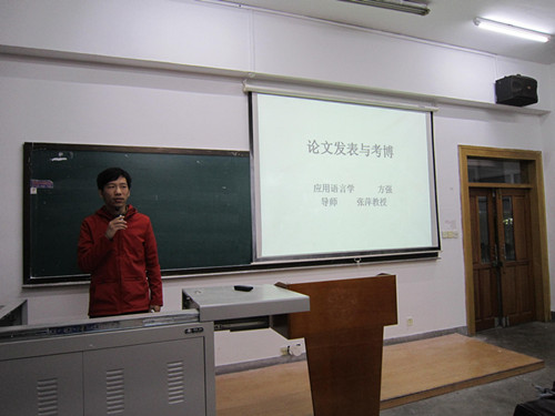 2016年4月8日下午6点,云顶7610线路检测邀请2013级应用语言学方向硕士研究生方强同学分享发表核心期刊论文及考取博士心得。出席此次经验交流会的领导老师有云顶7610线路检测研究生主管经理张成羽教授、研究生教学与管理部主任张萍教授和研究生教学秘书施歌老师。