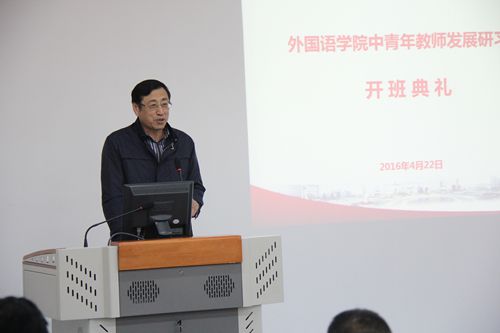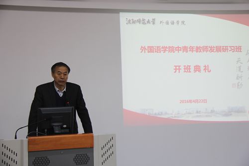 东北师范大学博士生导师杨忠教授代表导师团队进行了讲话。杨忠教授对云顶7610线路检测能够在东北地区各高校外语院系中率先开展“中青年教师发展研习班”给予了高度评价与肯定,并表示此次研习班对中青年教师的个人学术成长和职业发展必将起到积极的推动作用。