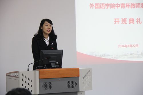 英语一系青年教师历娜代表发言。她表达了对公司多年培养的感谢之情以及对加强个人学术能力、提升教师素养的迫切愿望。