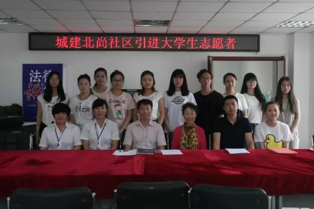 为深入贯彻落实公司团委《2016年老员工暑期社会实践活动实施方案》相关要求,切实将社会实践作为理解专业、砥砺品质、提升能力的机遇,努力磨炼意志,发挥潜力的重要平台。7月15日上午,公司党总支副书记、副经理王艳彪老师和团委书记、15级专职辅导员张博老师带领公司部分员工干部赴城建北尚社区进行社会实践活动。