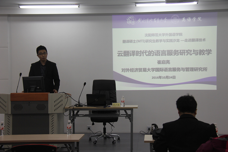 崔启亮博士的讲座于10月24日进行,由张林副教授主持。上午的讲座题目为《云翻译时代的语言服务研究与教学》,崔启亮博士主要围绕“翻译与语言服务产业与市场概述、翻译与语言服务教学、翻译与语言服务研究”三个方面进行了详尽介绍并与在场师生进行互动。下午崔启亮博士结合具体研究案例作了题为《从翻译到语言服务》的讲座,并从“语言服务行业现状、语言服务企业现状、语言服务人才技能、MTI课程的学习方法”等四个方面展开,还进一步结合翻译应用中word文档的使用指导师生进行上机操作。现场的教师及员工就报告内容进行了提问并与崔博士进行深入交流。