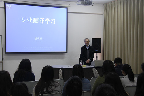 柴明颎教授为公司师生做题为《专业翻译学习》的报告