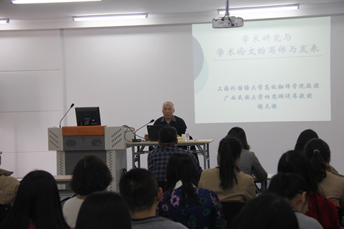 谢天振教授为公司师生做题为《学术研究与学术论文的写作与发表》的报告